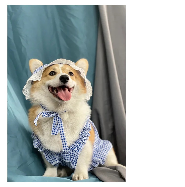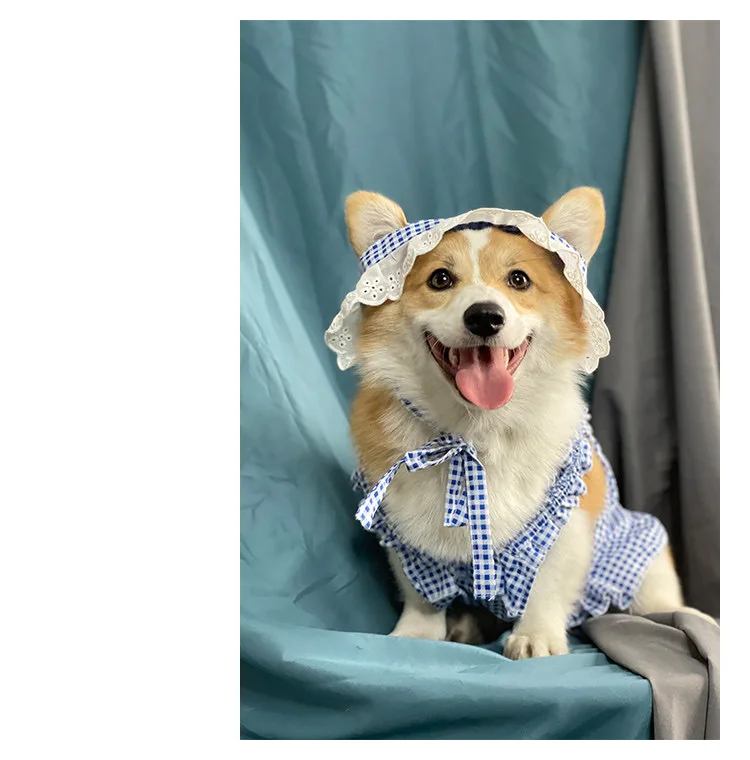 Модное платье для собаки с шляпой и юбкой, футболка для маленьких, средних и больших собак, щенков чихуахуа, Мопсов, французских бульдогов YKC26