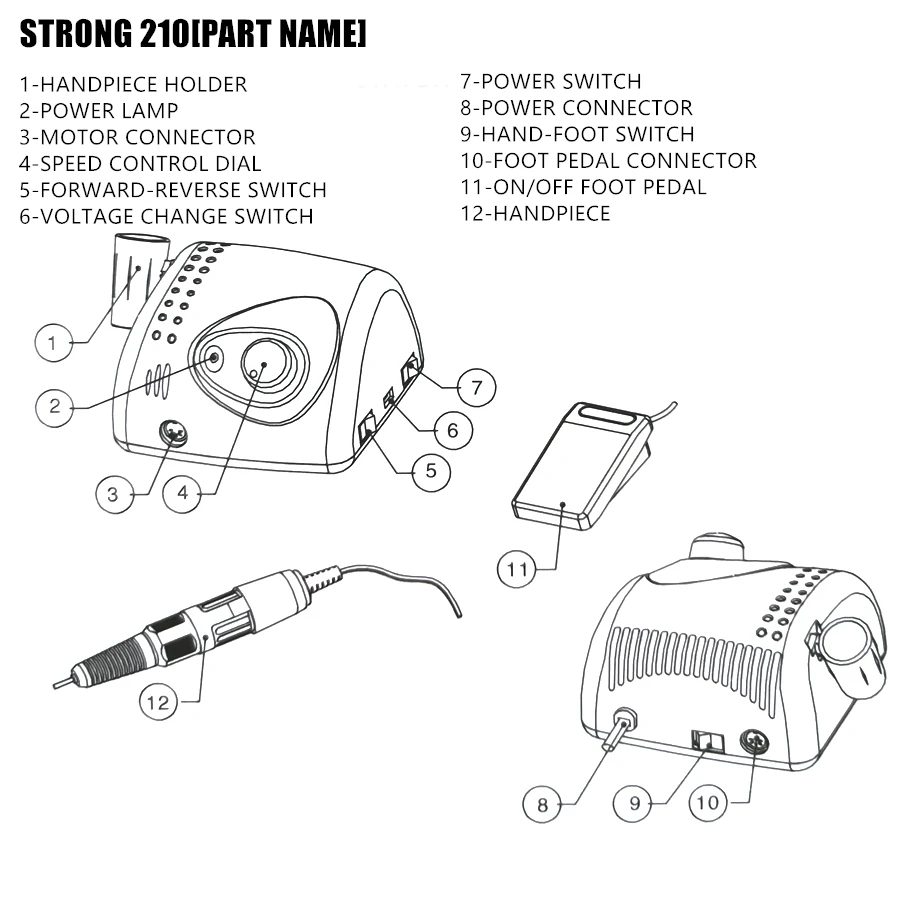 Аппарат для маникюра Strong 210, 65 Вт, 35000 об.мин.