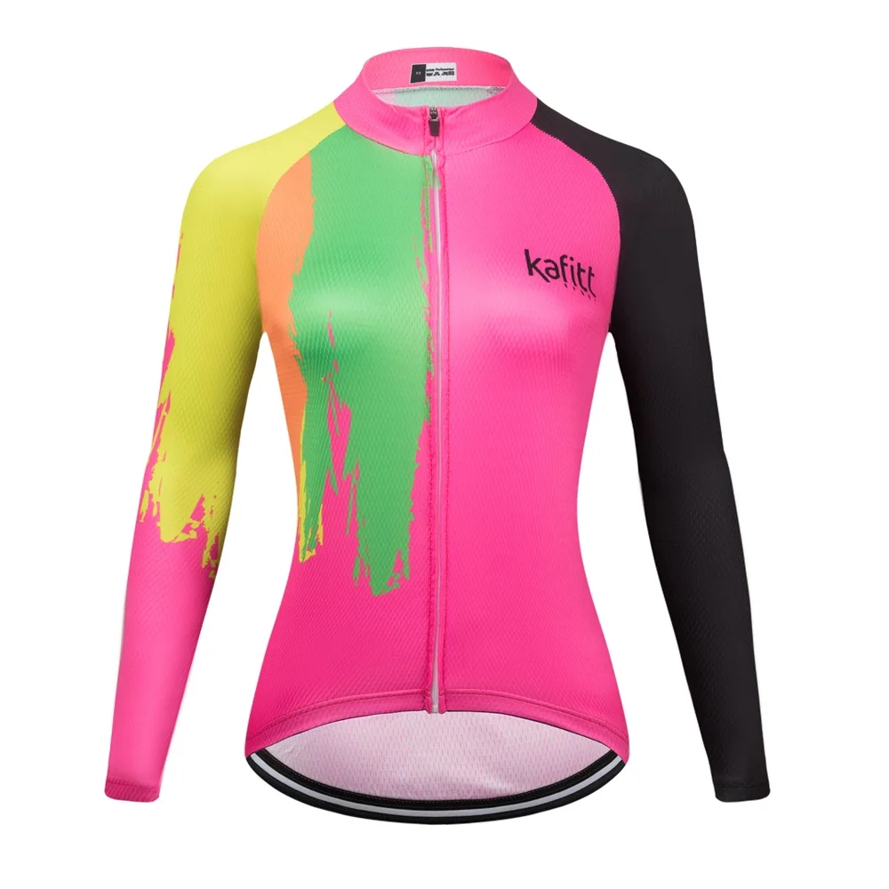 Женская длинная розовая велосипедная футболка Kafitt, профессиональ...
