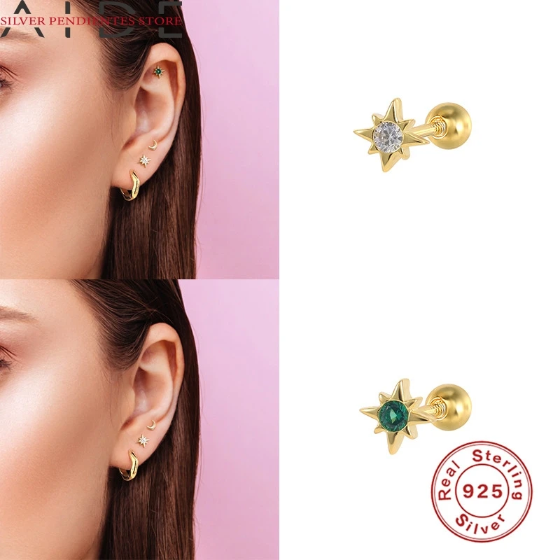 Женские серьги-гвоздики из серебра 925 пробы с восьмиугольной звездой