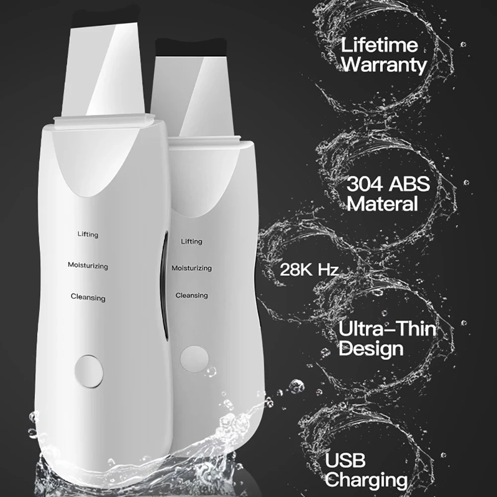 Ultrasonic Skin Scrubber Rechargeable Ion Deep Face Cleaning Vibration Massager Acne Blackhead Removal Cleanser Exfoliating Pore