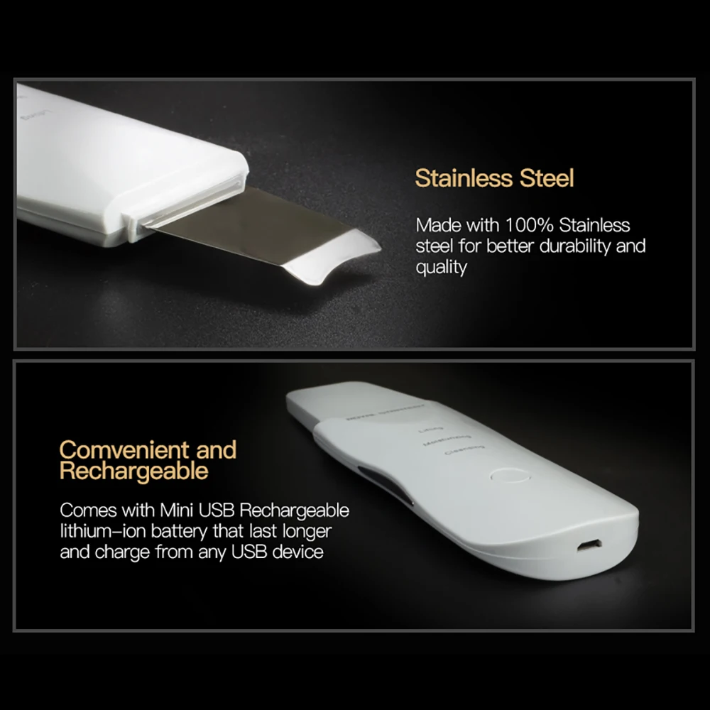 Ультразвуковой скребок для кожи, перезаряжаемый ионный глубокий очиститель лица, Вибрационный массажер, средство для очистки кожи, отшелушивание пор