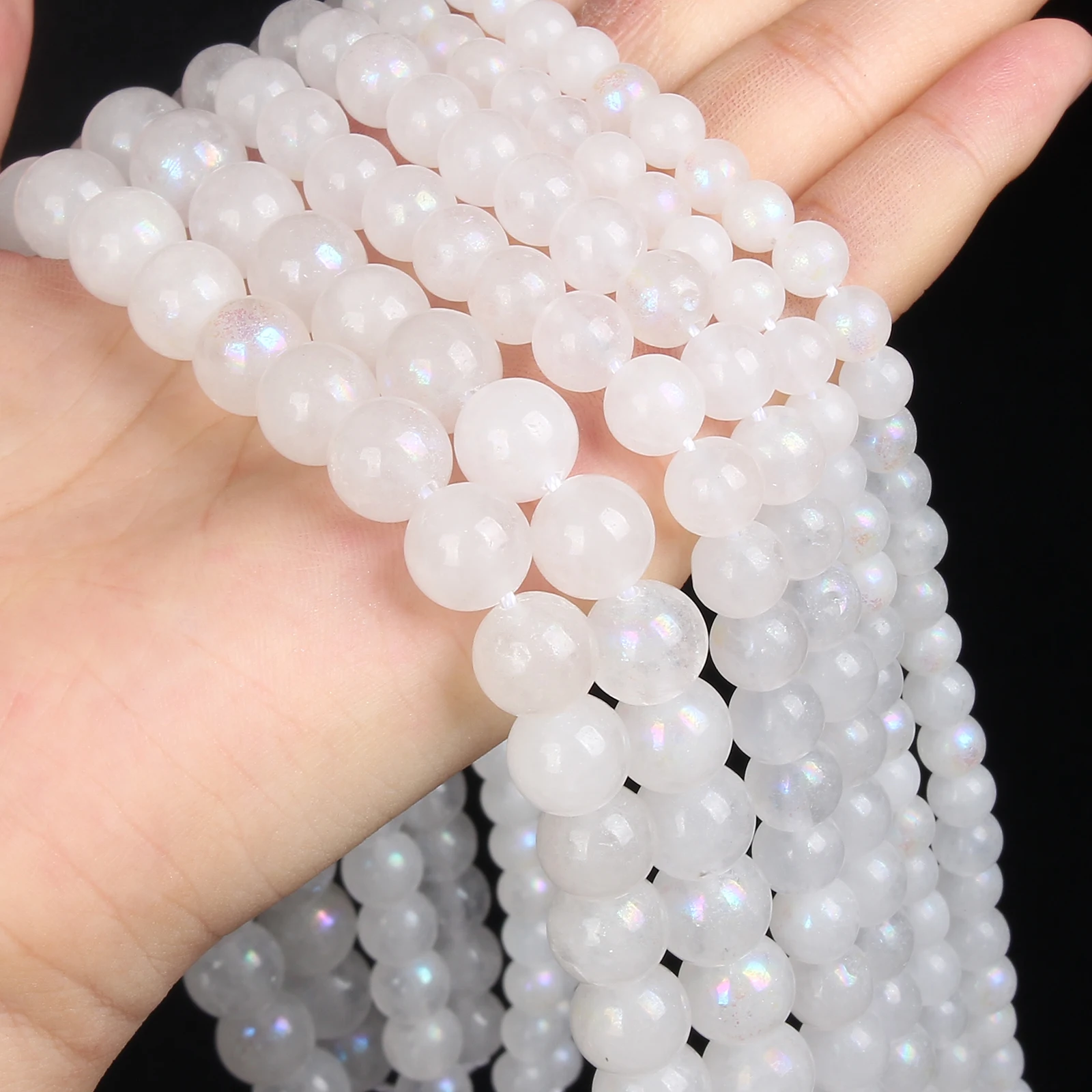 Бусины из натурального камня, круглые бусины белого лунного камня для изготовления украшений сделай сам, браслетов, ожерелий, аксессуары, бусины 6810 мм