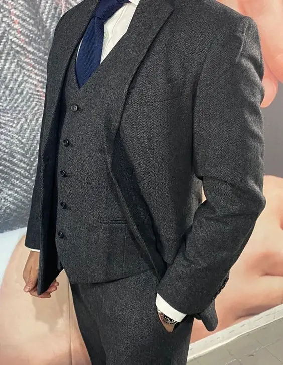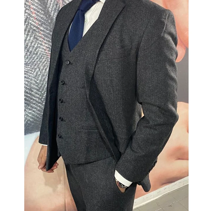 Костюм мужской твидовый, пиджак с жилетом и брюки, приталенный силуэт в елочку, свадебные смокинги, костюм для лучшего мужчины, для выпускного, Повседневный, деловой