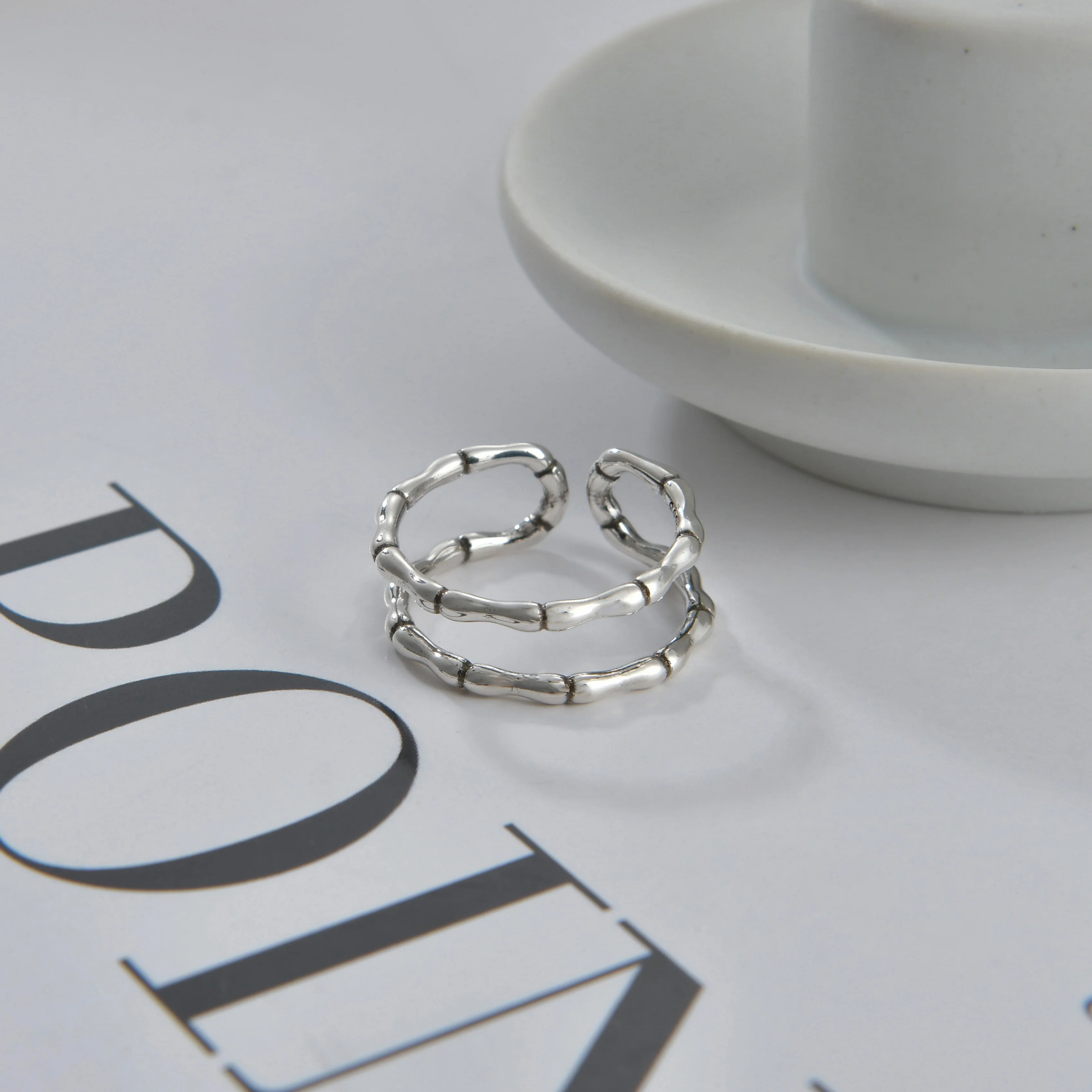 Серебряное кольцо из нержавеющей стали, двойное Открытое кольцо с бамбуком, кольцо с сердцем и улыбкой для вечеринки для женщин и мужчин, бижутерия для свадьбы, Дня Святого Валентина, подарки