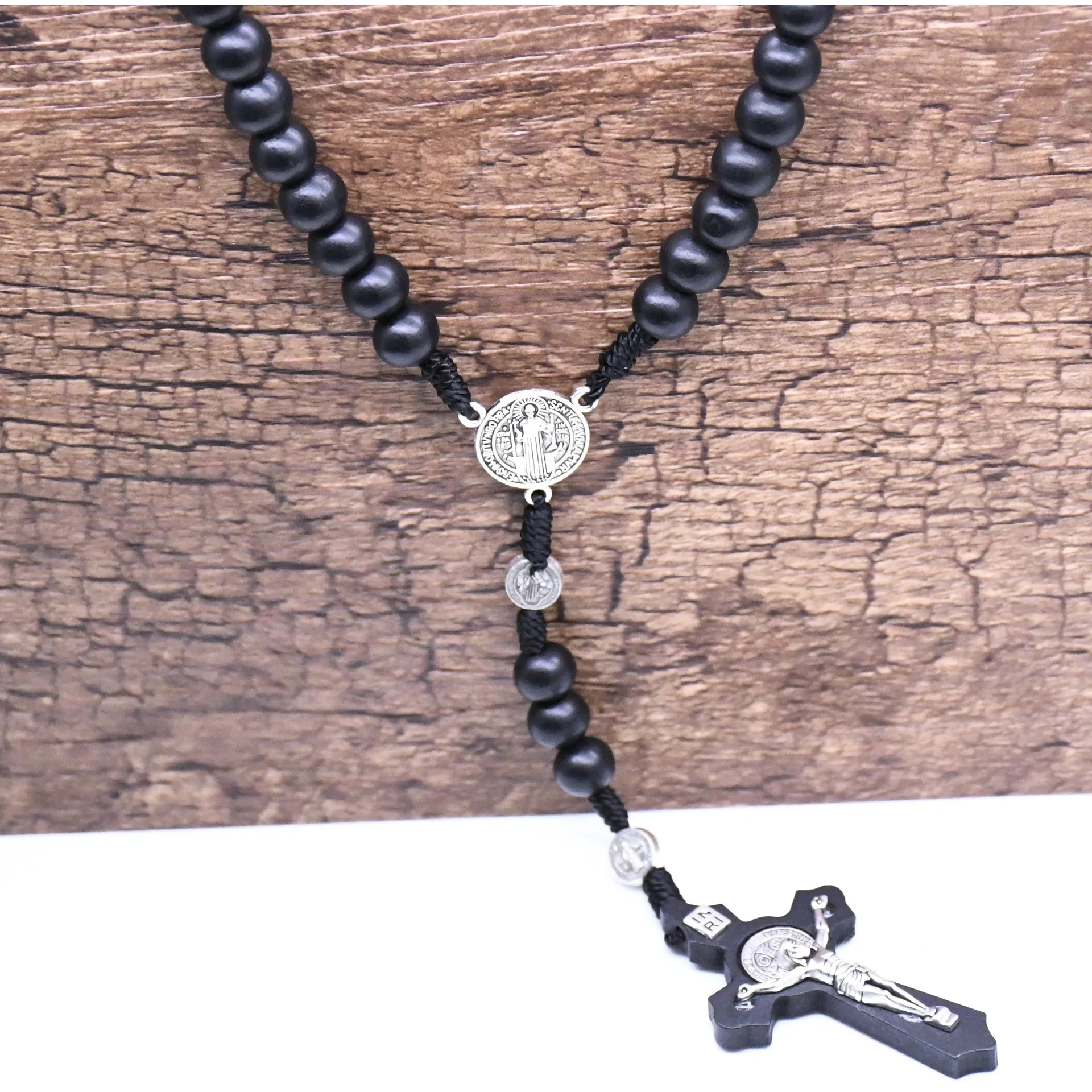 Ожерелье из черного дерева с подвеской-крестом в виде Розария