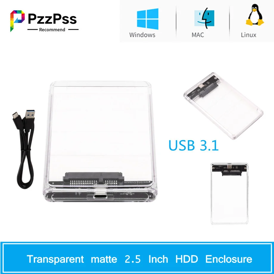 PzzPss прозрачный 2,5-дюймовый корпус для жесткого диска SATA 2,5 к USB 3,0 5 Гбитс 6 ТБ поддержка UASP HD внешний Type C 3,1 SSD чехол для жесткого диска