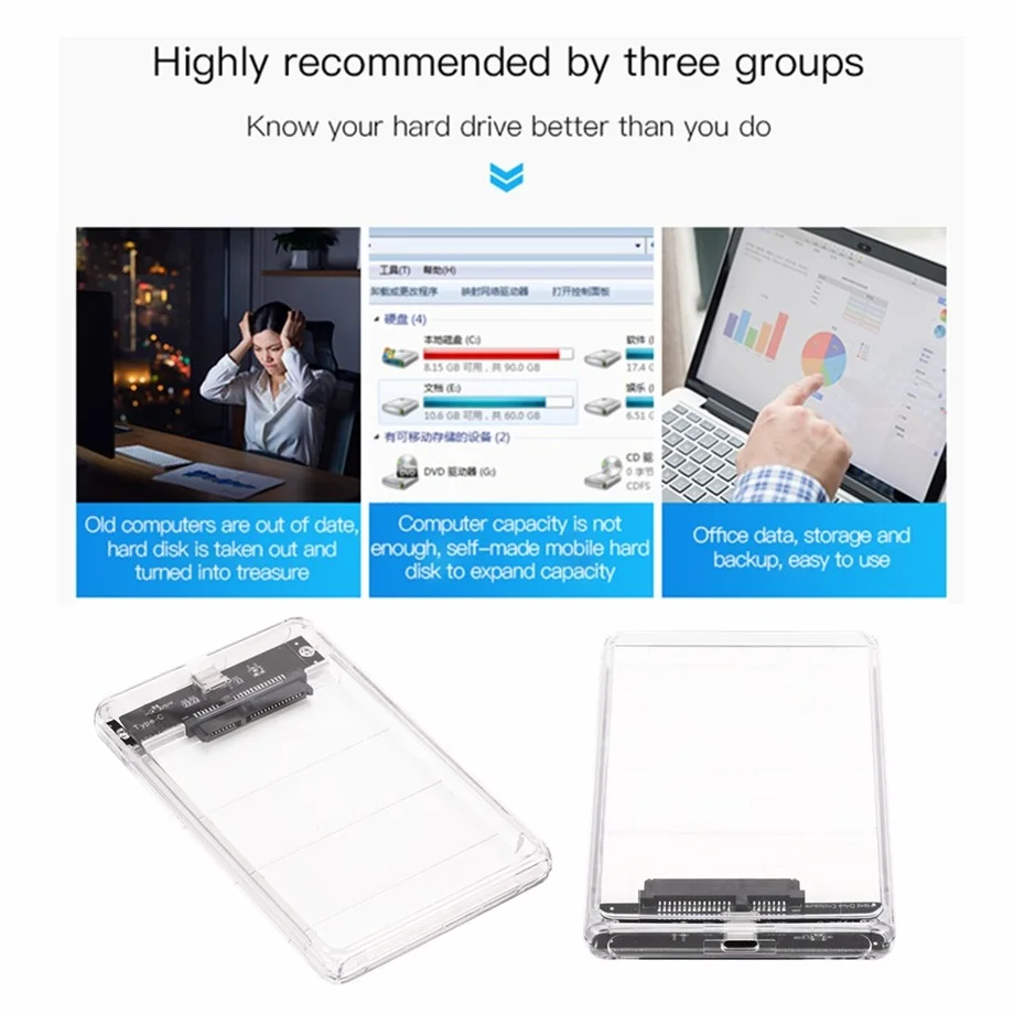 Прозрачный внешний корпус для жесткого диска USB 3,1 на SATA, чехол...