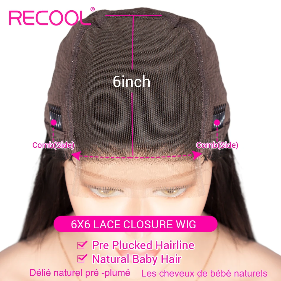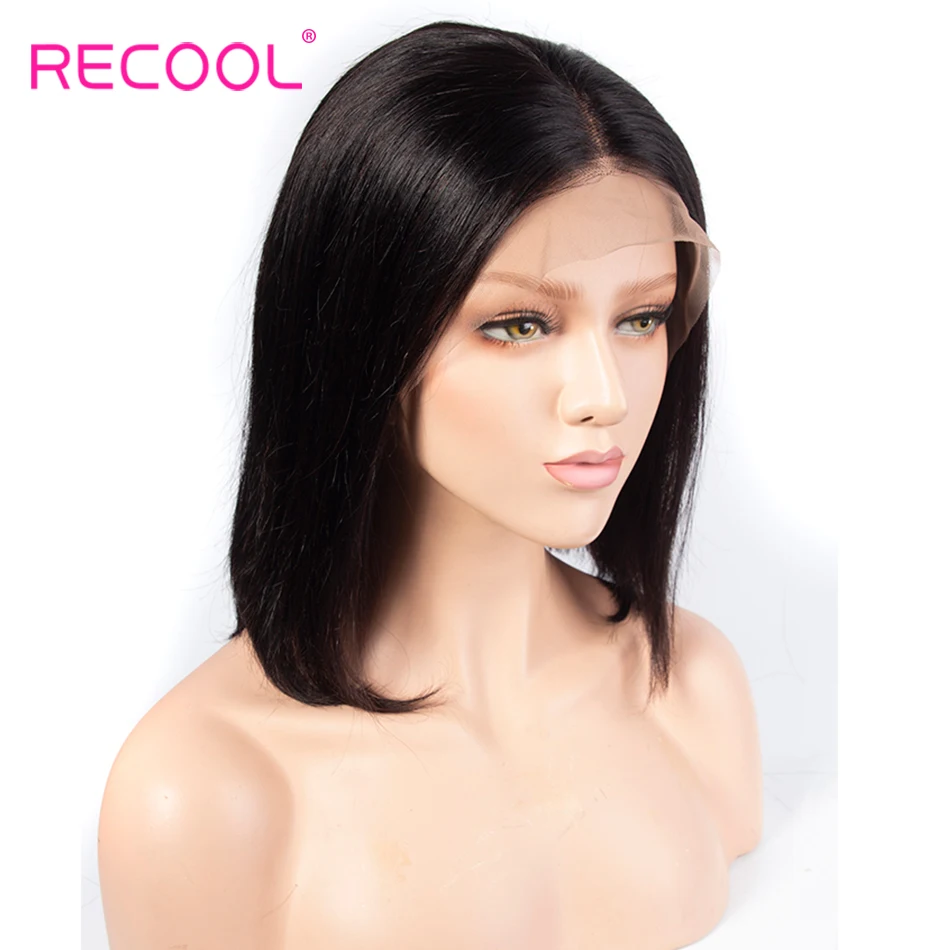 Recool, короткий прямой парик, Боб, кружевные передние человеческие волосы, парики, 8-14 дюймов, короткий Боб, бразильский, 4x4, парики на шнуровке для черных женщин