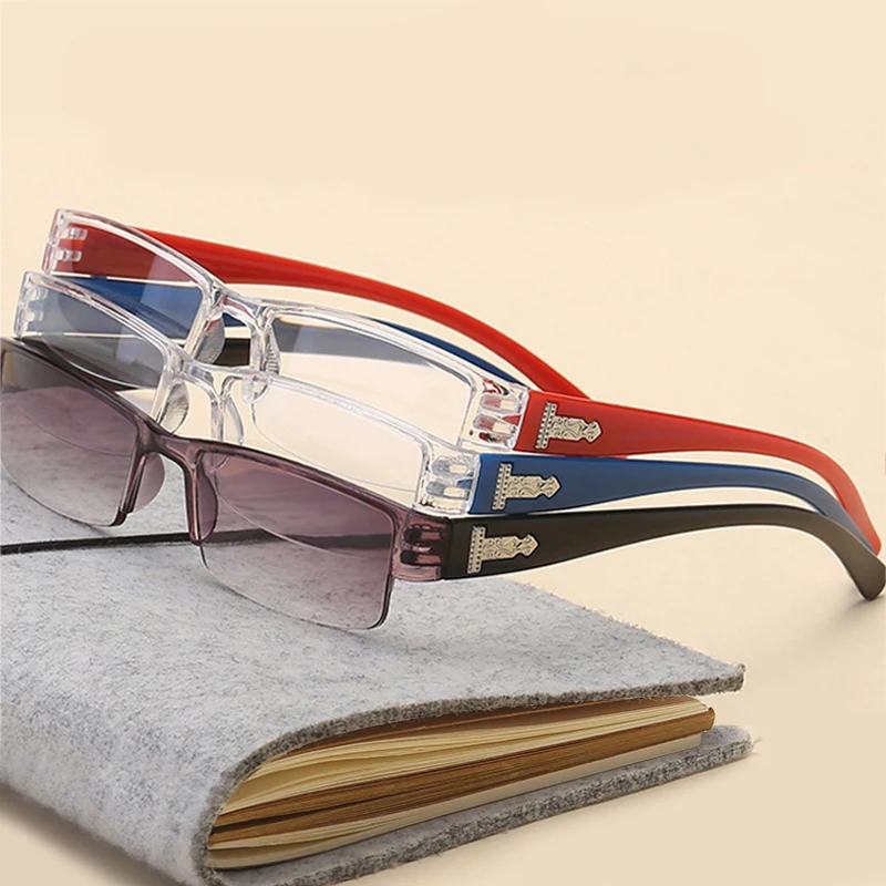 Модные корейские очки для чтения для мужчин и женщин, пресбиопические очки с прозрачными линзами в полуоправе, 1,0, 1,5, 2,0, 2,5, 3,0, 3,5, 4,0, для чтения