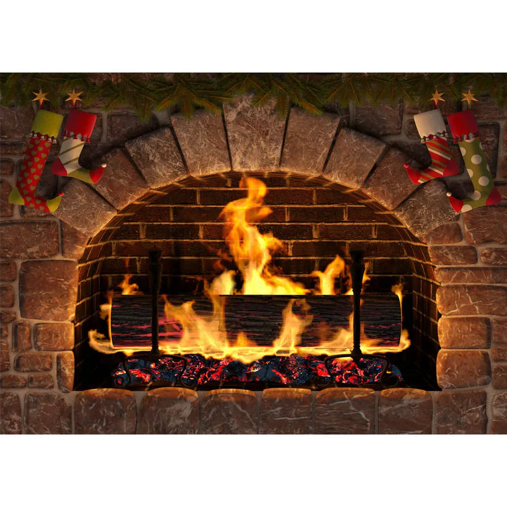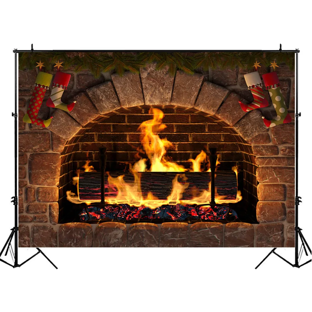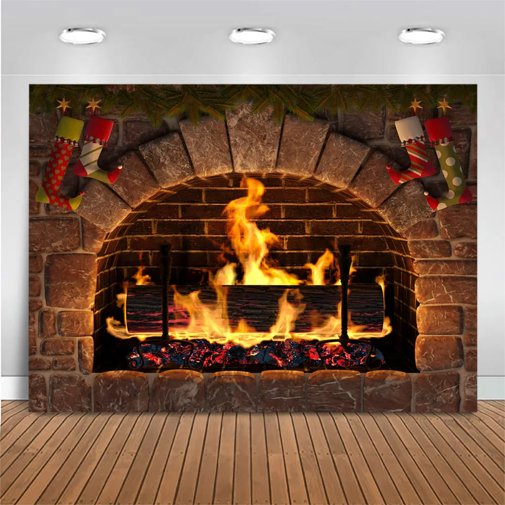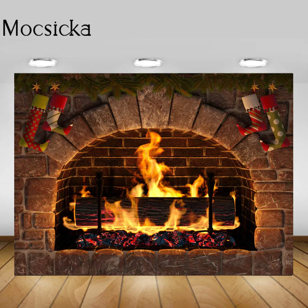 Фон Mocsicka для фотосъемки с изображением старого камня, камина, рождественских носков, милого домашвечерние декора