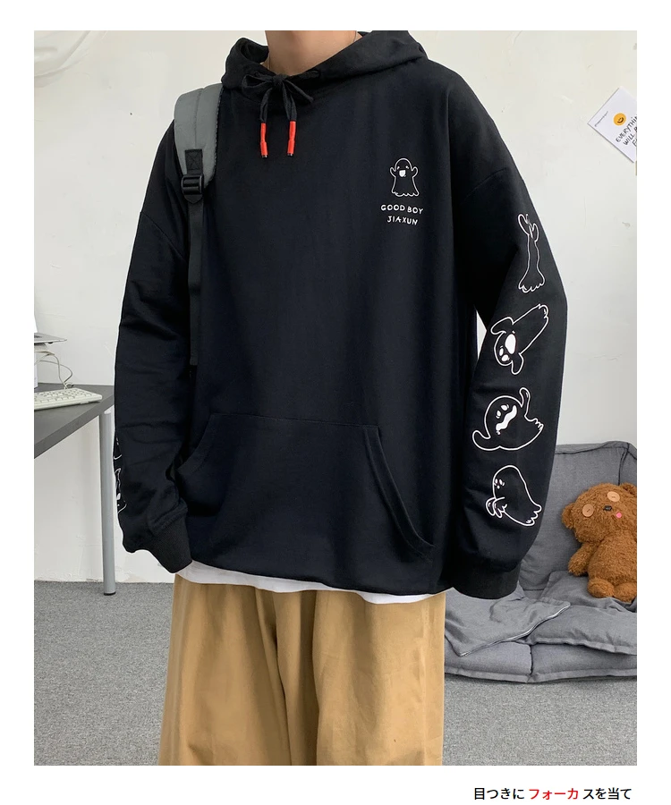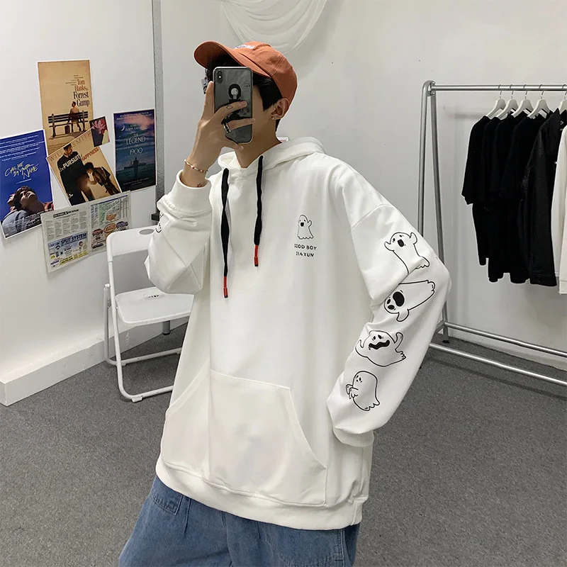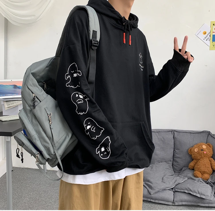 Мужские черные толстовки, Модный повседневный Свободный пуловер унисекс для пар, модель 2021 года, осенняя Японская уличная одежда, брендовые свитшоты большого размера для мужчин
