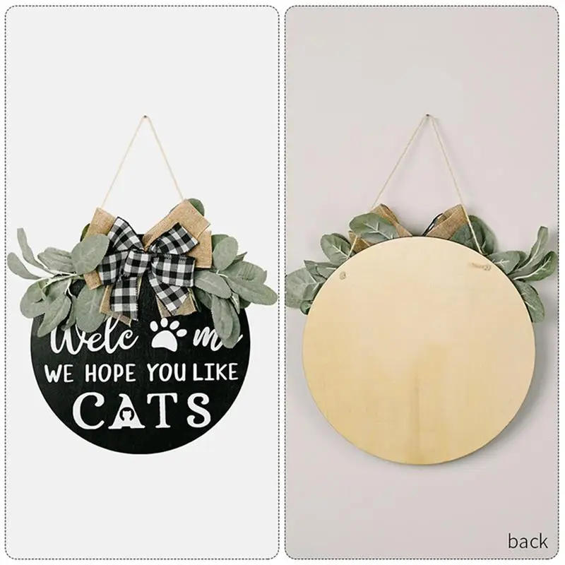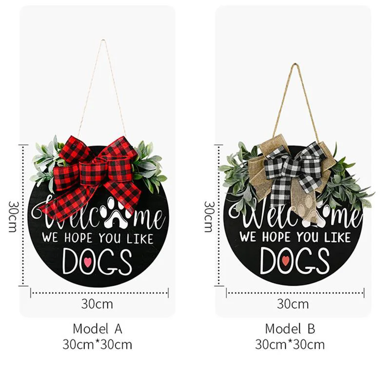 Висячий венок на дверь для собак, украшение на переднюю дверь, таблички для домашних питомцев, знаки для напоминания о собаке, большой клетчатый венок с бантом, украшение для дома