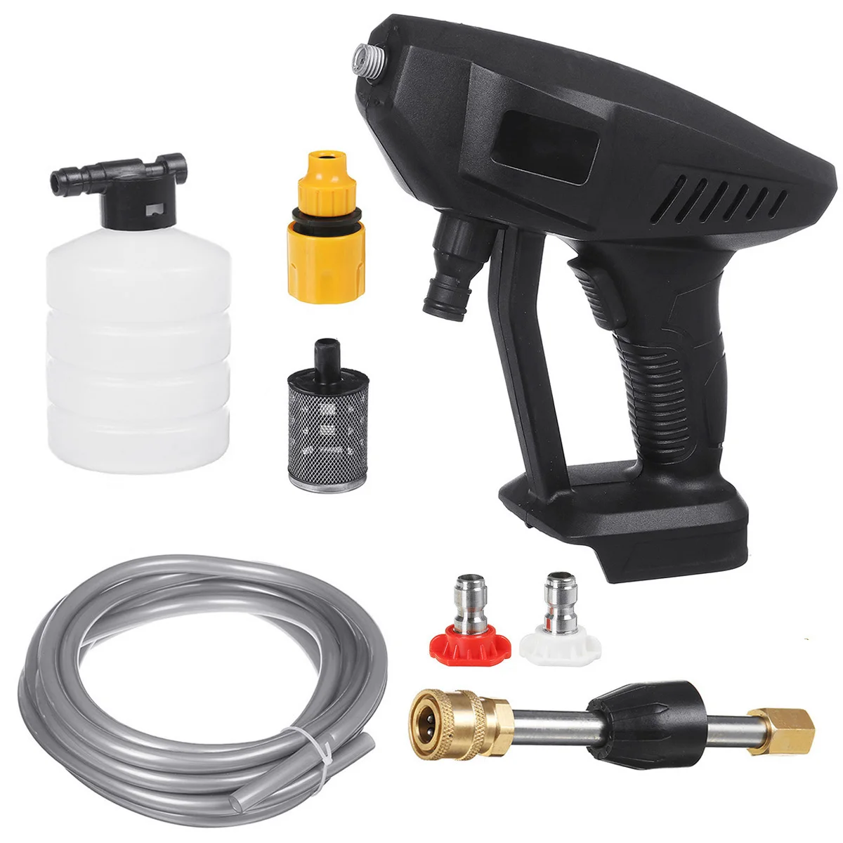 Посылка включает в себя:1 x Автомобильная стиральная машина1 х 5 м ВодопроводАккумулятор MAKITA-1 шт.Зарядное устройство-1 шт.1 x Удлинительный стержень1 x сопло 0 °1 x сопло 40 °1 х пенопласт1 х соединение водопровода1 x быстрый разъем1 x Руководство по введению