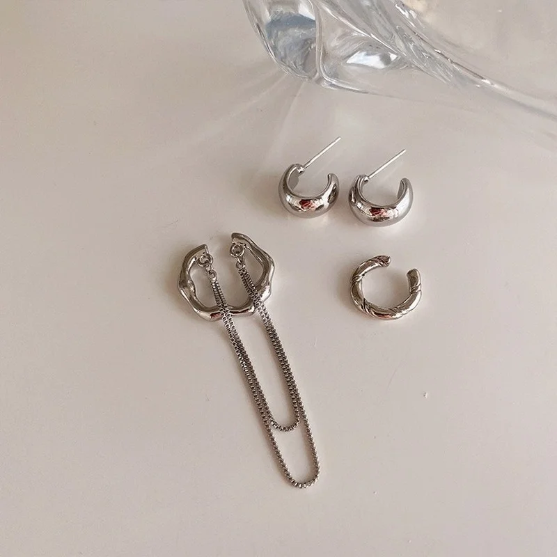 U-Magic массивные круглые серьги-клипсы для женщин, с-образные серьги-кольца, нестандартные геометрические серьги, ювелирные изделия, Длинная кисточка, цепочка