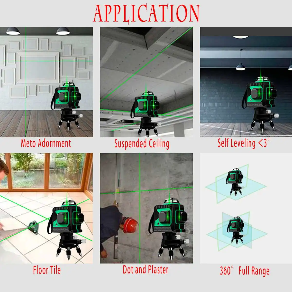 3D 4D 16 12 8 линий зеленый лазерный уровень 360 Горизонтальные и ...
