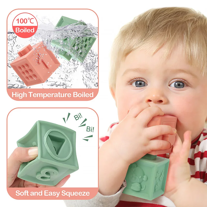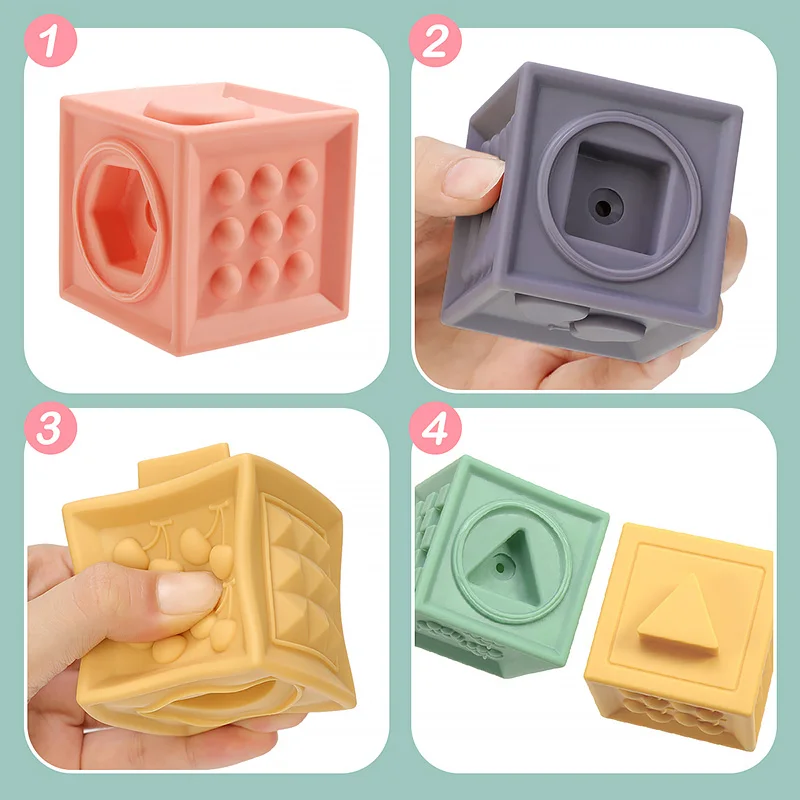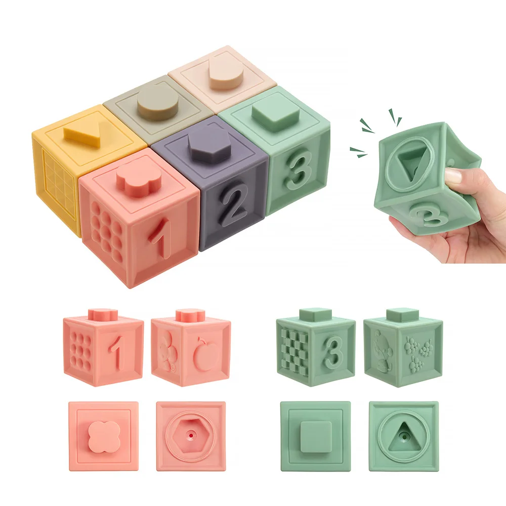 TYRY.HU 6 шт., квадратные Красочные фигурки с цифрами, геометрия животного, силиконовые игрушки для укладки, мягкий блок, складная развивающая игровая Ванна игрушки, не содержащие БИСФЕНОЛ