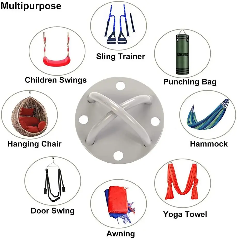✨4 отверстия безопасны и стабильны-этот настенный кронштейн разработан с 4 отверстиями для большей долговечности и стабильности. Опора безопаснее, чем кронштейн с 2 отверстиями. Безопасная Поддержка до 881 фунтов с процессом сварки.✨X-образная структура, более сильная поддержка-улучшенная версия x-образной подвесной пластины обеспечивает более прочную поддержку, большую безопасность и большую стабильность во время использования.✨Множественные установки-4,72 дюймов (12 см) в диаметре и 881 lbs. Металлические настенные крепления может быть установлен в вертикальном положении на потолки, безопасность верхней балки или вертикальном направлении, шпильки, или в горизонтальном положении на стенах. Это означает, что он может выдерживать любую силу!✨Простая и прочная установка-Потолочный якорь имеет 4 шт. Расширительных винтов для бетонных конструкций, поэтому он может быть установлен в считанные минуты (рекомендуется для профессиональной установки), экономьте ваше время на установке, пусть у вас будет больше времени и энергии, чтобы сфокусироваться на тренировках.✨Универсальный-позволит вам наслаждаться спортом в помещении, на открытом воздухе и в любом месте. Используется для подвесные ремни, тренировочные ремни, Олимпийские кольца, качели для йоги, гамаки, боксерские песочницы, боевые веревки, трапеции гамака и так далее.