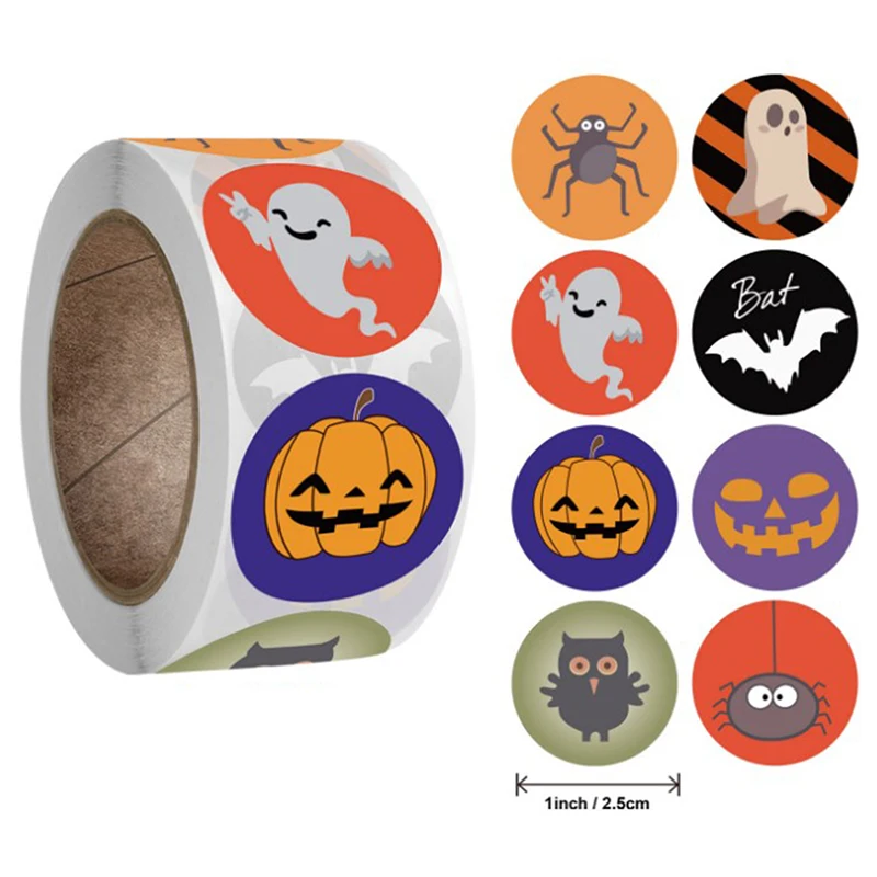 500 шт.рулон, бумажные наклейки в виде тыквы
