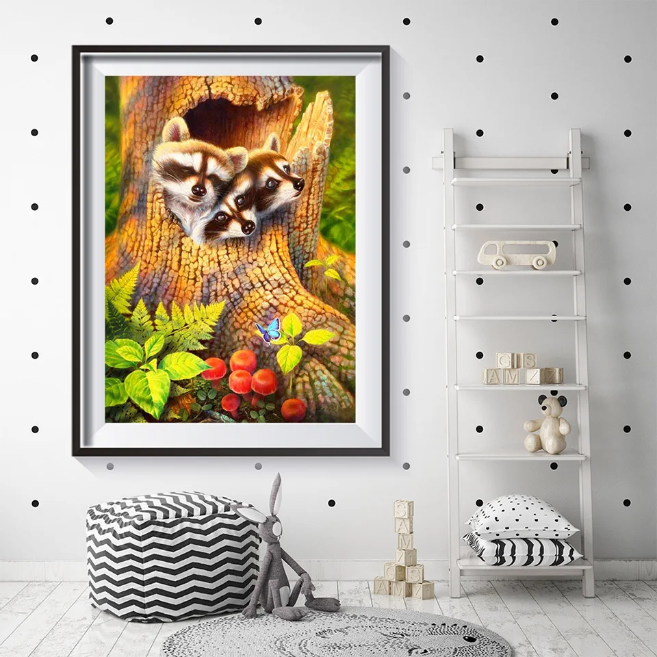 Картина для алмазной вышивки с изображением енота, 5D, квадратные стразы, мозаичное ремесло