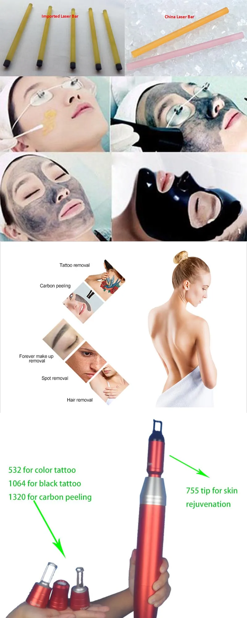 2) головки для лечения 1064нм и 532нм используются для удаления татуировок и веснушек.