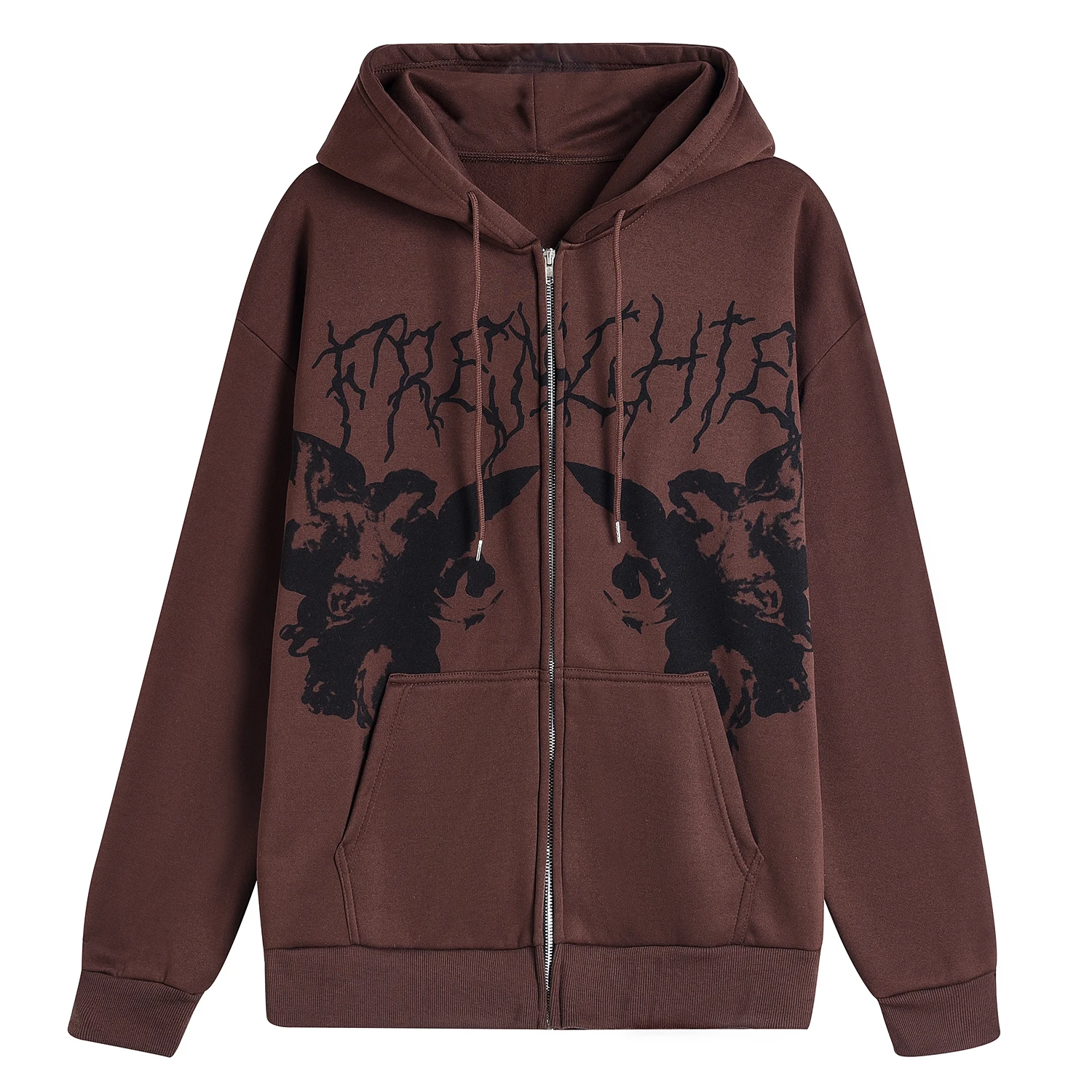 Куртка с капюшоном с ангелом в стиле ретро, Женская куртка на молни...
