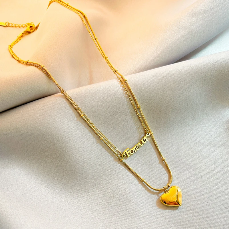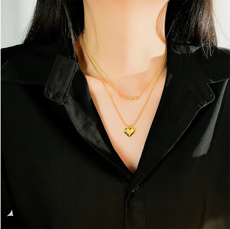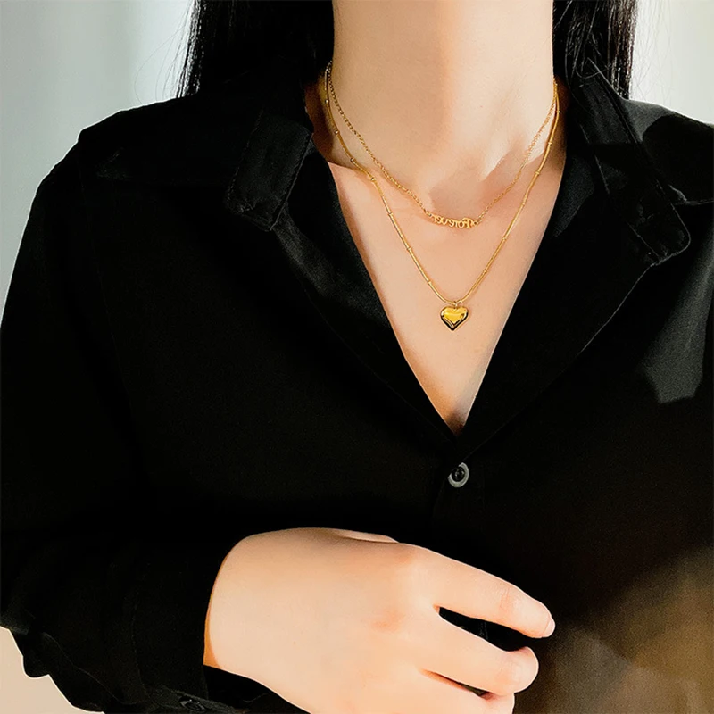 Двухслойные ожерелья XIYANIKE 316L из нержавеющей стали золотого цвета с сердцем для женщин, Чокеры 2021, трендовые модные ювелирные изделия в подарок на фестиваль