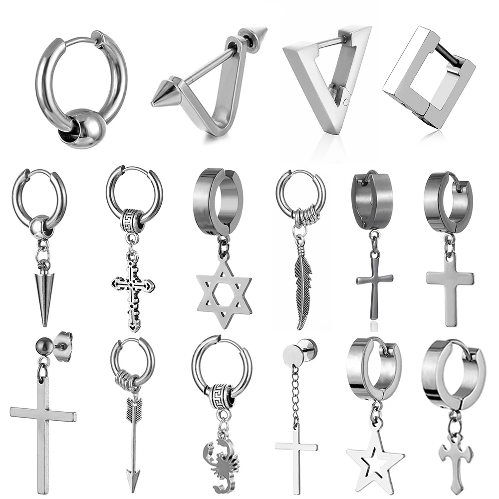 1 шт. перья или крестики Хооп серьги панк-рок Стиль для мужчин и же...