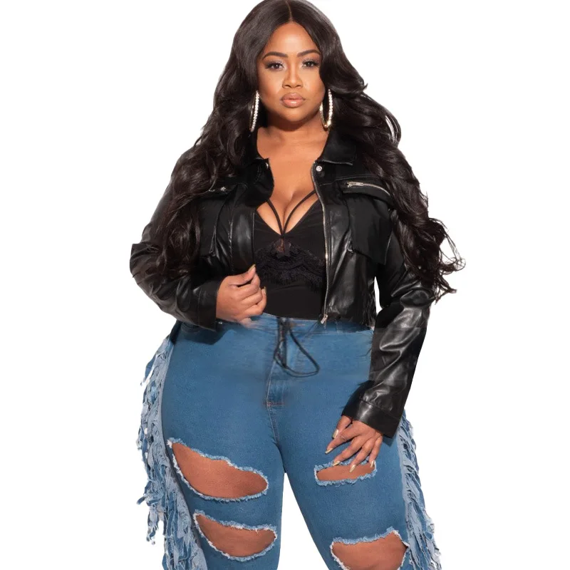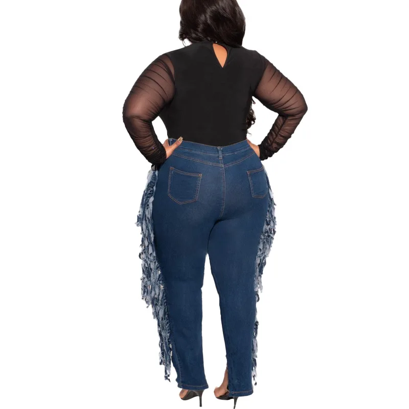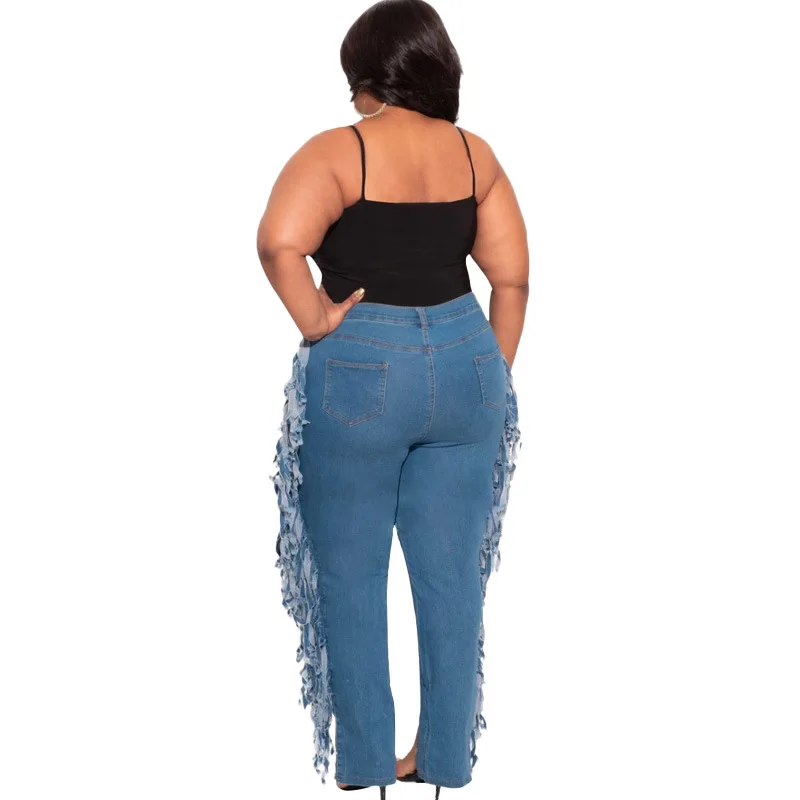 Женские джинсы с бахромой CM.YAYA, рваные брюки-карандаш большого р...