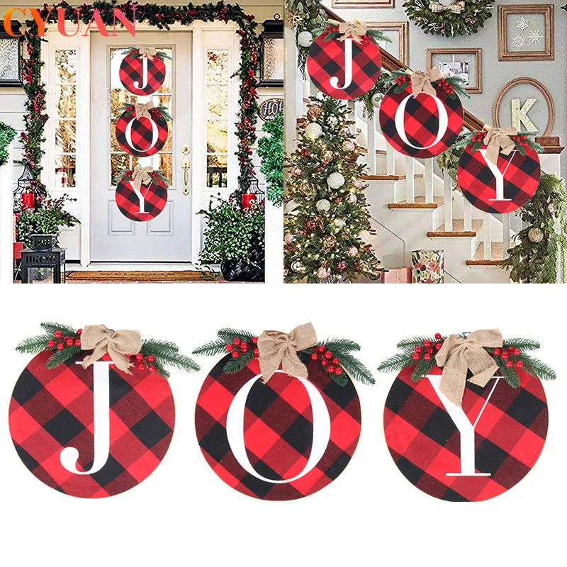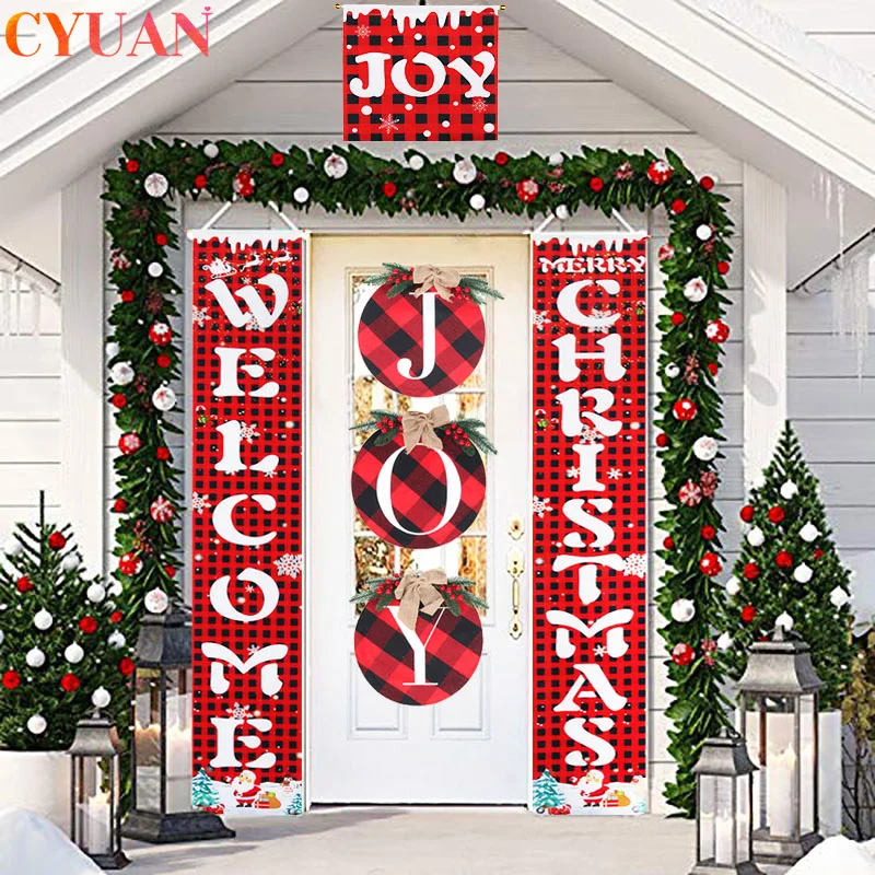 2022 уличные рождественские украшения для дома, Счастливого Рождества, Нового года, Красная клетка, дверь крыльца, радостные знаки, рождественские баннеры, украшения