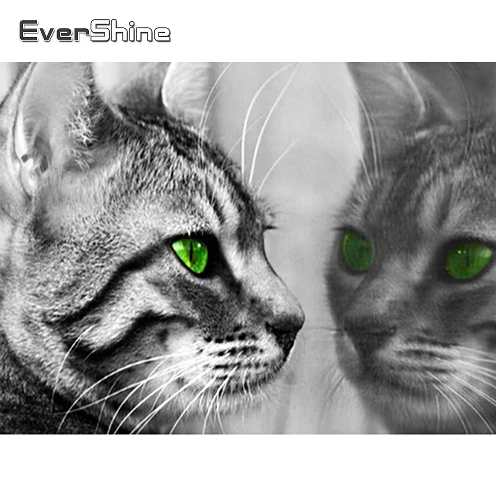 Алмазная живопись Evershine, вышивка крестиком в виде кошки, черный и белый цвета, 5D предметы сделай сам, вышивка квадратными и круглыми стразами