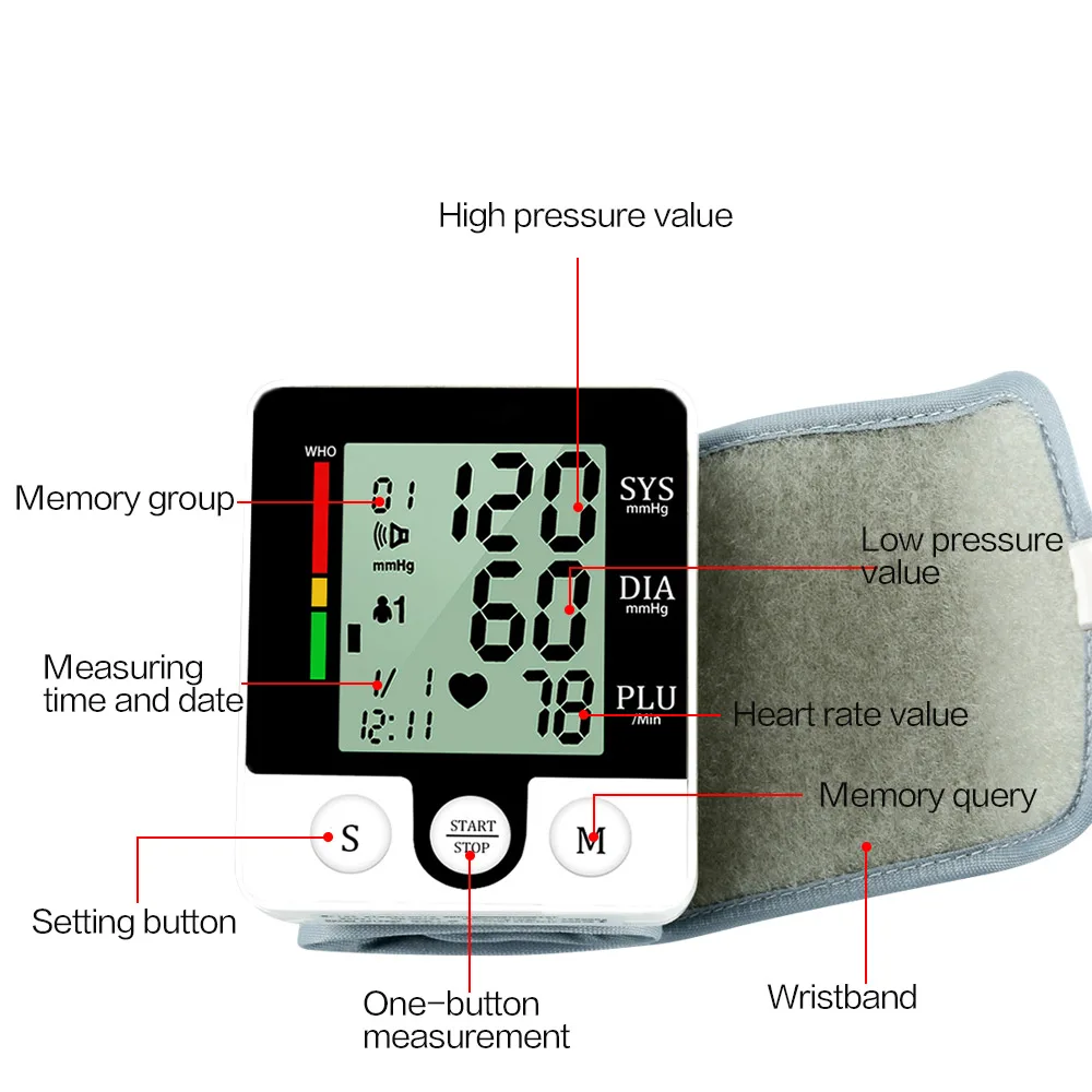 Автоматический цифровой наручный тонометр для измерения артериального давления, тонометр на руку, прибор для измерения пульса, пульса