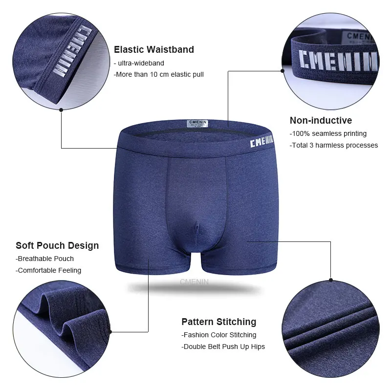 Мужские хлопковые трусы-боксеры CMENIN, темно-синие быстросохнущие ...