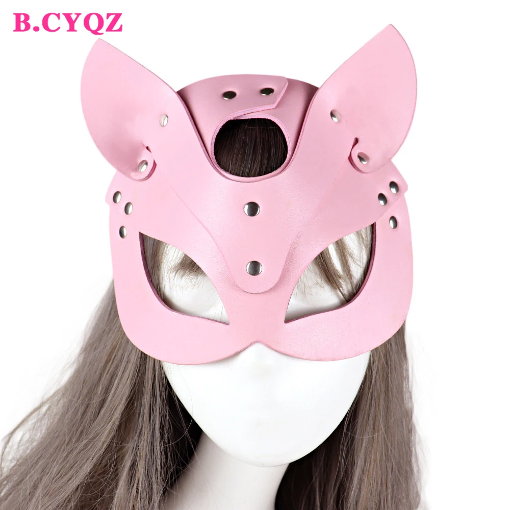 B.CYQZ кожаная маска лисы розовая Женская японская Косплей Аниме полулицевая маска кошки аксессуары для фотографий