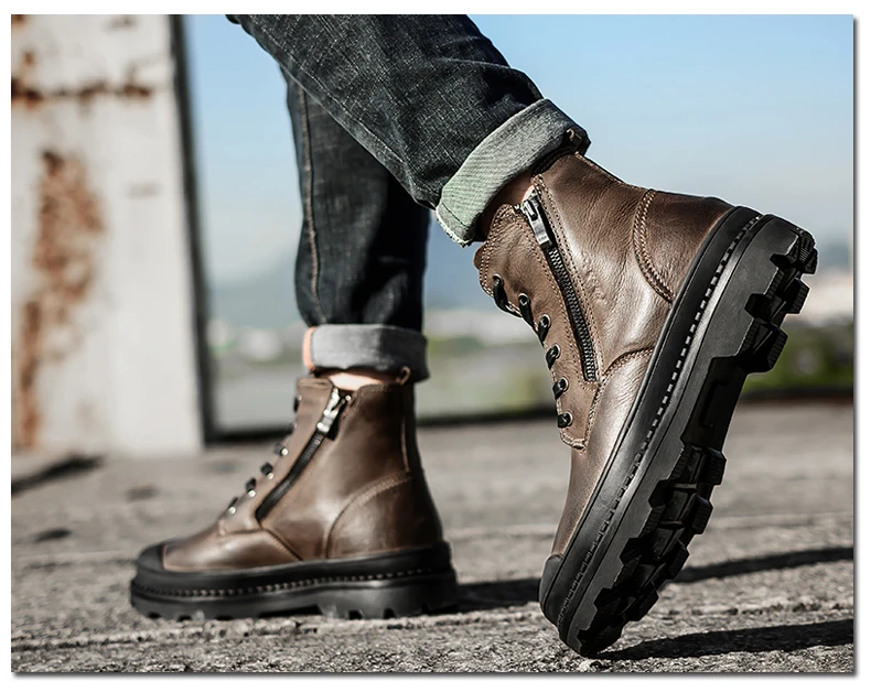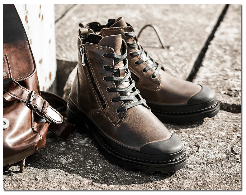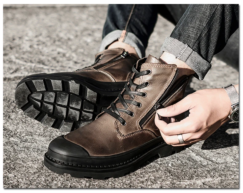 Мужские ботильоны из натуральной кожи, повседневная мотоциклетная обувь, теплые зимние рабочие ботинки, защитная обувь