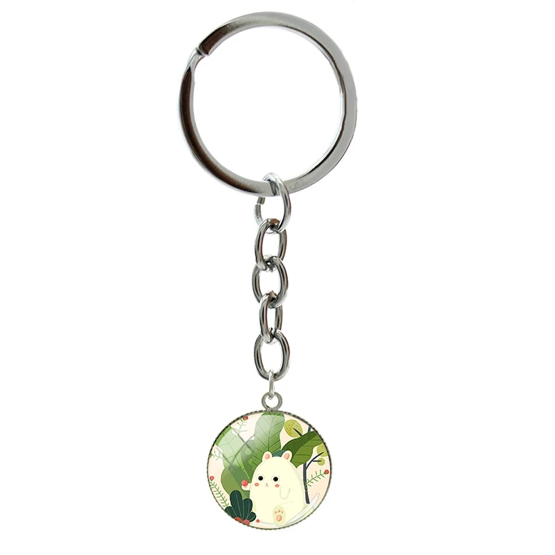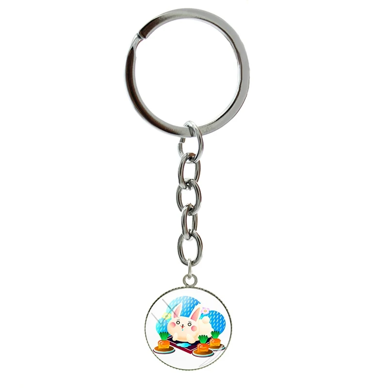 Простой кролик брелок аниме милые маленькие животные Домашние животные стеклянные кабошоны цепи Ключи Подвеска ювелирные изделия для счастливой Пасхи