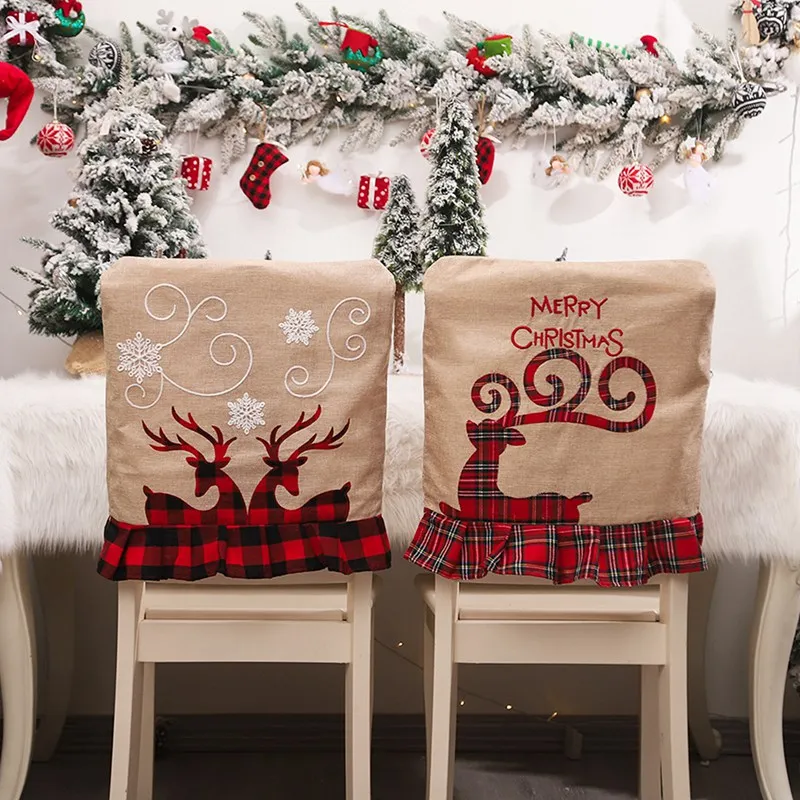 Чехол на рождественское кресло для дома 2021, Рождественское украшение, Санта-Клаус, лось, рождественские подарки, рождественские подарки