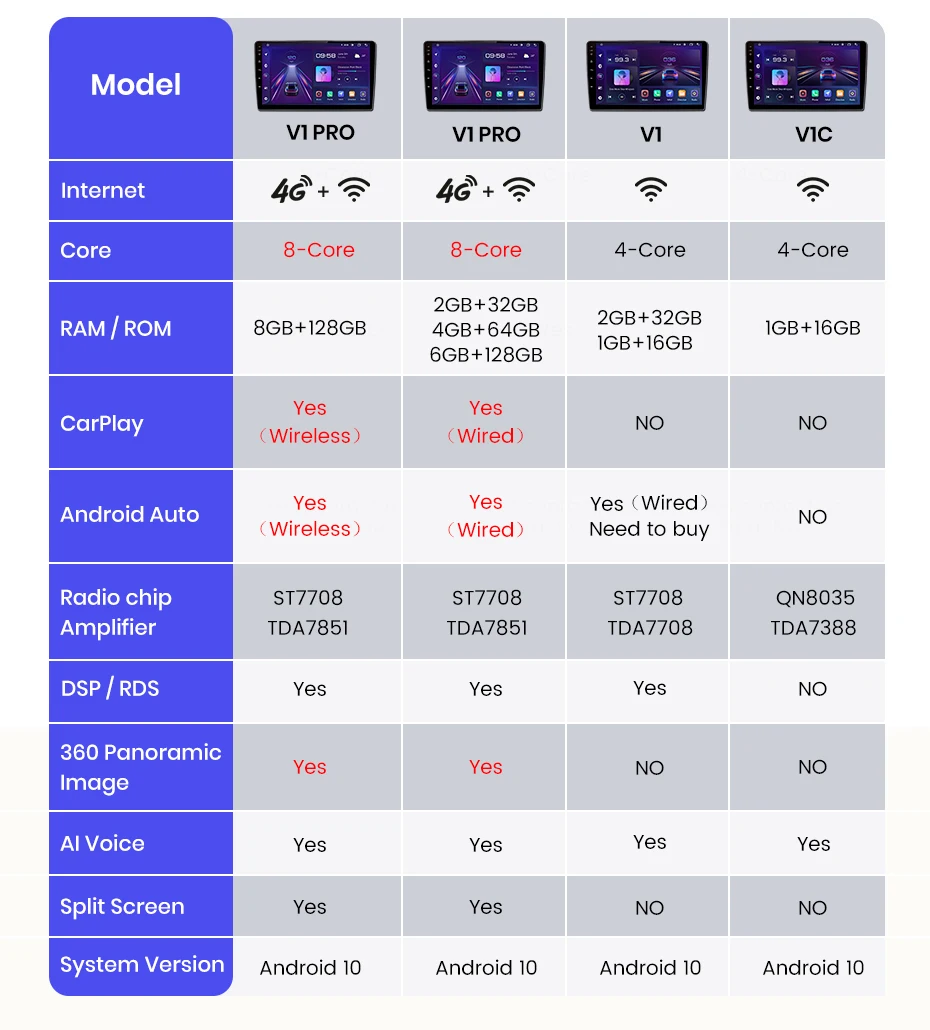 Необходимо использовать только usb-кабель для соединения телефона и радио, управления и управления мобильными телефонами через устройство, откройте безопасную жизнь вождения.PS: V1Pro поддерживает CarPlay и Android Auto (свяжитесь с нами для активации);V1: Поддержка Android Auto нажмите на следующую картинку, чтобы купить;V1C: Не поддерживайте оба товара;