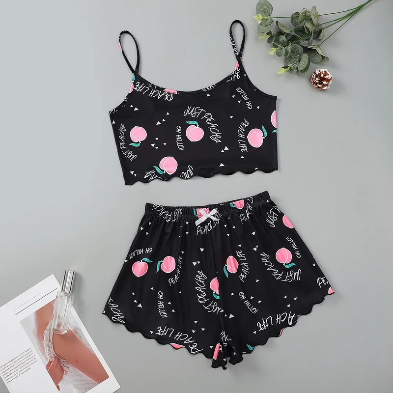 Пижамный комплект, на тонких бретелях, с буквенным принтом, без рукавов, с отделкой, шорты для сна, пижама с кружевами, костюм, пикантная женская ночная рубашка