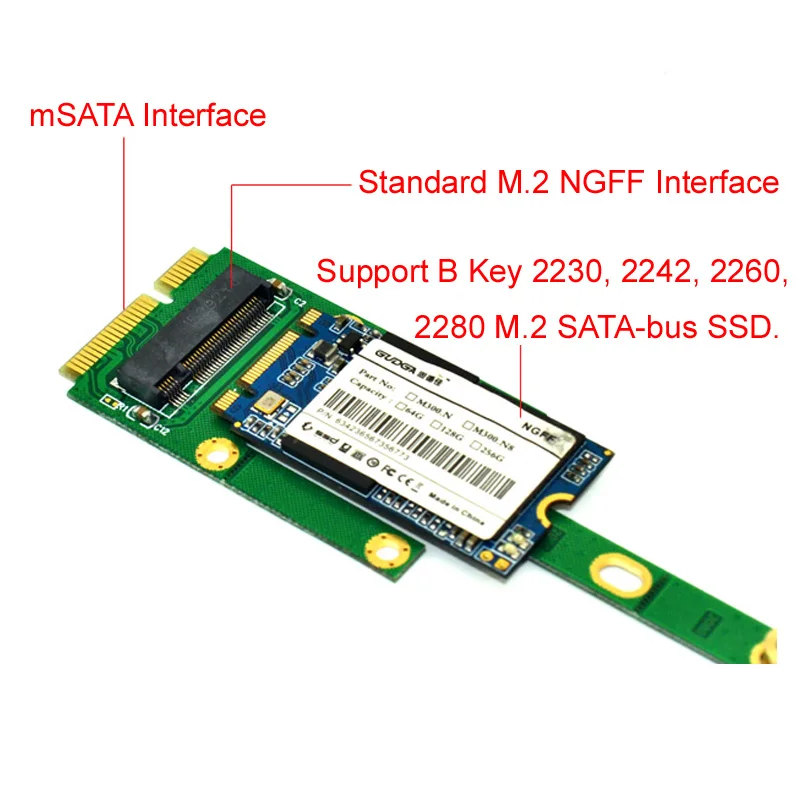 Подключает NGFF B Ключ SSD к mSATA Mini PCI-E материнской плате.
