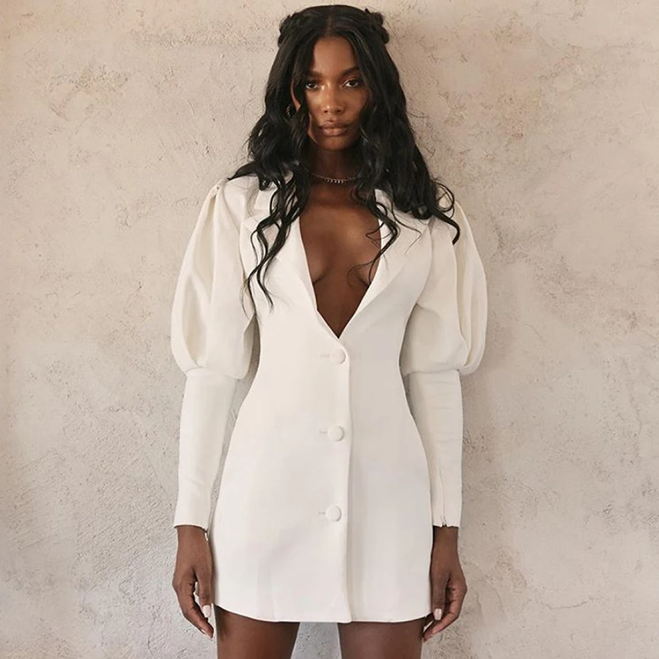 Женское офисное платье-блейзер hirigin, белое однобортное облегающе...