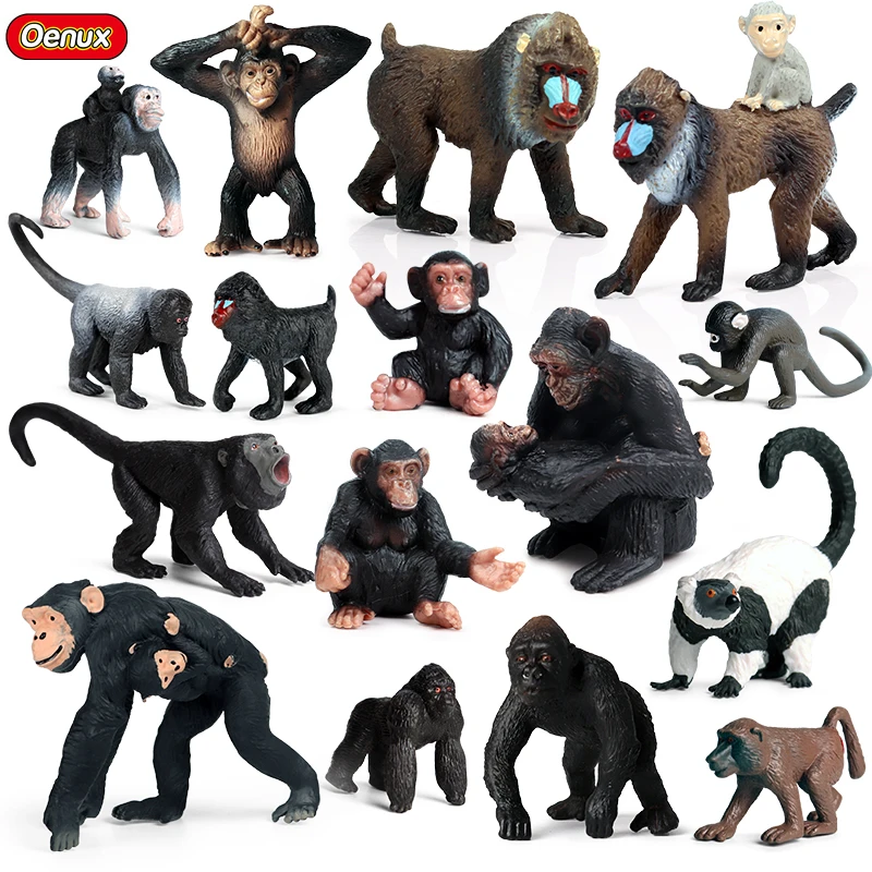 Характеристика:Oenux оригинальные дикие экшн-фигурки животных обезьяна шимпанзе орангутанг Золотой Гиббон Модель ПВХ миниатюрные детские развивающие игрушки