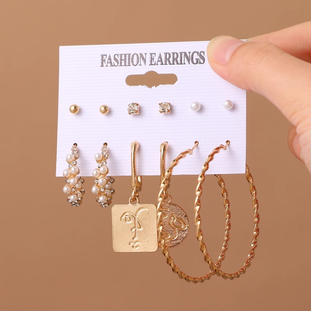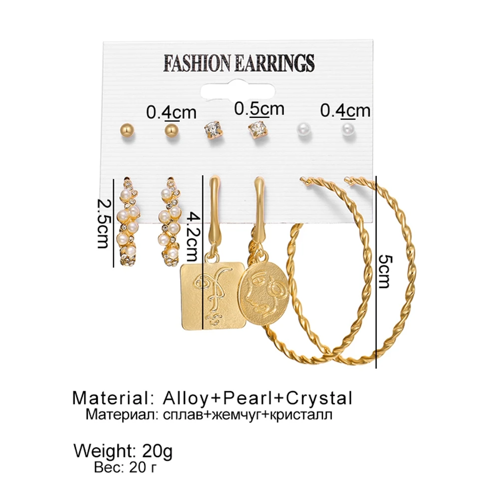 VKME большой золотой жемчуг серьги-кольца набор для женщин лицо висячие серьги девушки геометрический круг серьги-гвоздики серьги 2021 тренд ювелирные изделия подарок