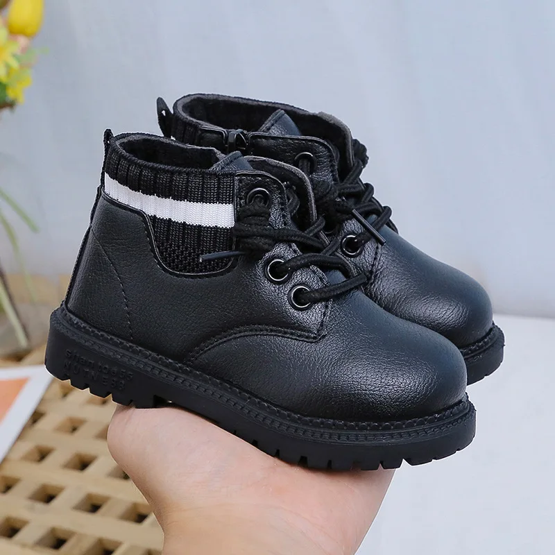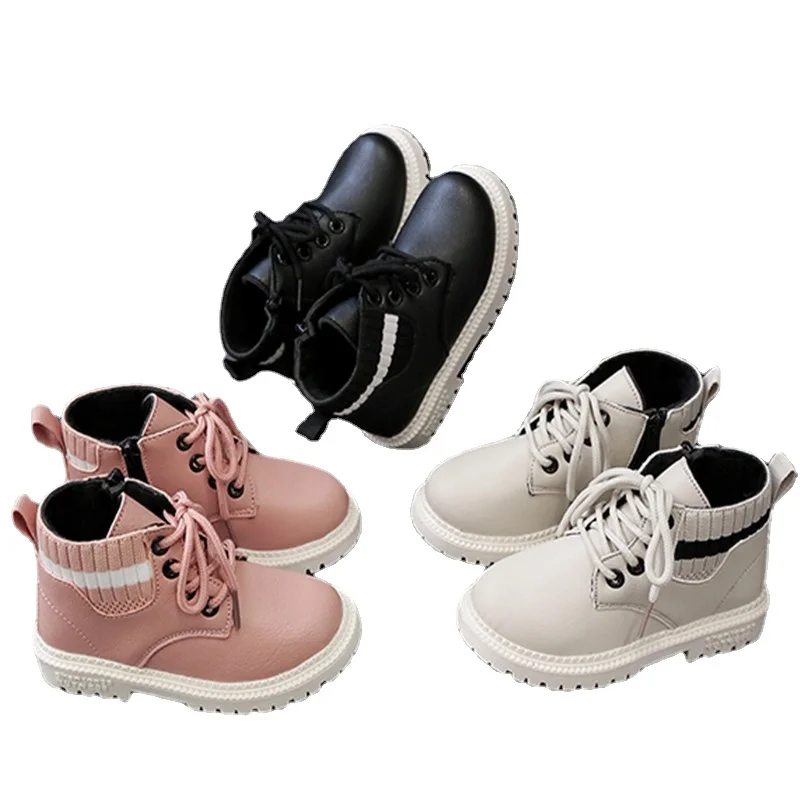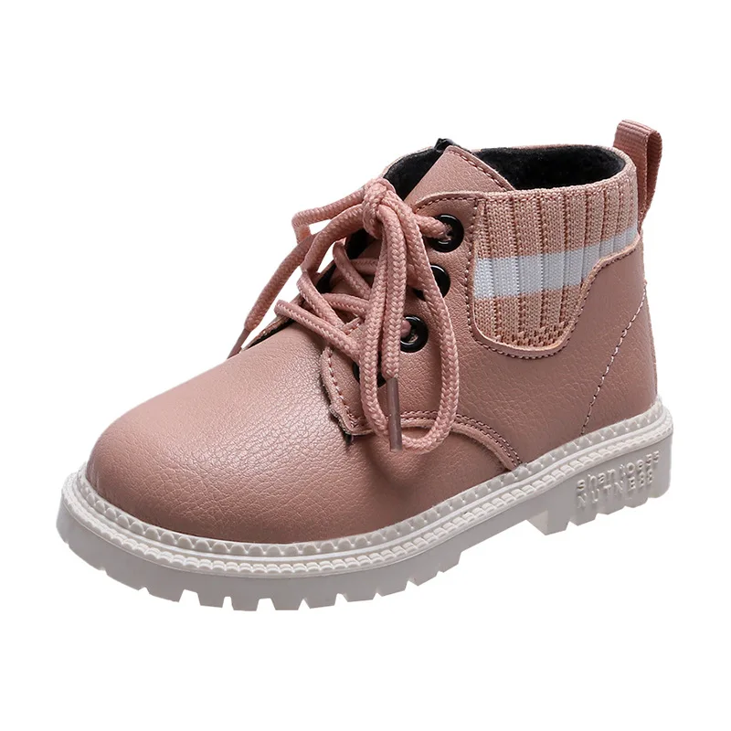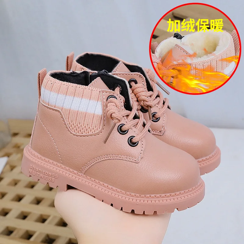 Детские Нескользящие ботинки SQJ001, зимняя теплая обувь для девочек, в полоску, с плюшевой подкладкой, кроссовки для начинающих ходить мальчиков