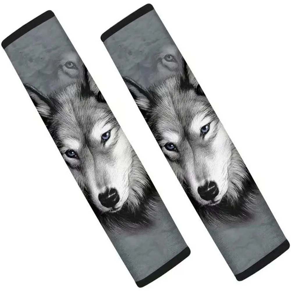 Чехол для ремня безопасности с 3D-принтом волка, 2 упаковки, мягкий чехол для автомобильного ремня безопасности, неопреновые Наплечные подушки для ремня безопасности подходят для большинства автомобилей