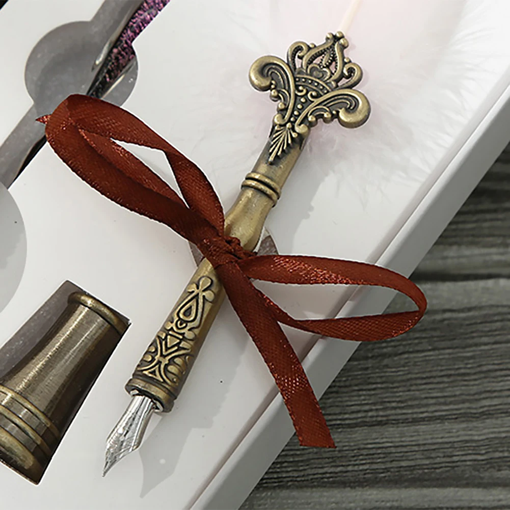 Комплектация: 1 ручка в стиле ретро, 4 сменных наконечника, 1 металлический держатель для ручек; 1 ручка из хрустального стекла, 1 Хрустальный картридж стеклянный держатель для ручек, 5 цветных чернильных картриджей