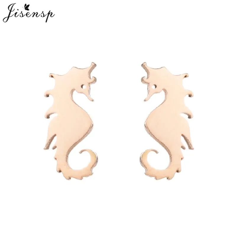 Женские серьги-животные из нержавеющей стали в стиле панк, модные ювелирные изделия 2021, ласточка, рыба, волк, морская лошадь, шпильки для пирсинга, корейские подарки