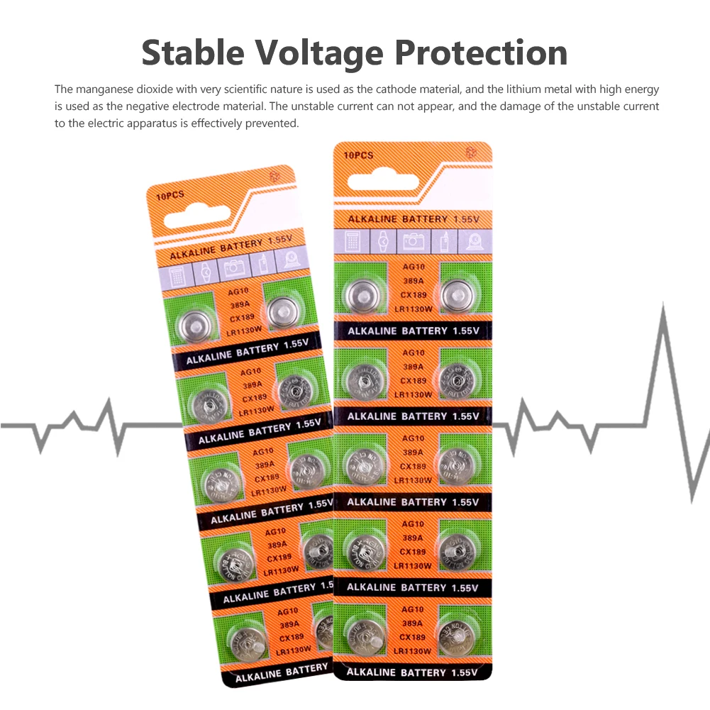 Щелочные калькуляторы AG10, 1,55 в, LR54 189, 20 шт., батарейки LR1130, L1131, 389, кнопочные, для часов батарейка для часов