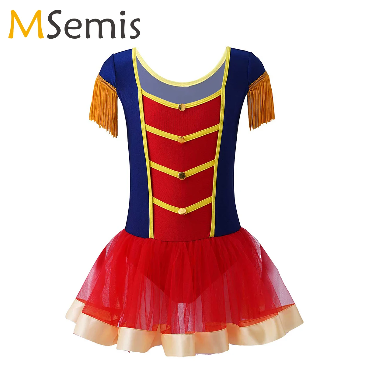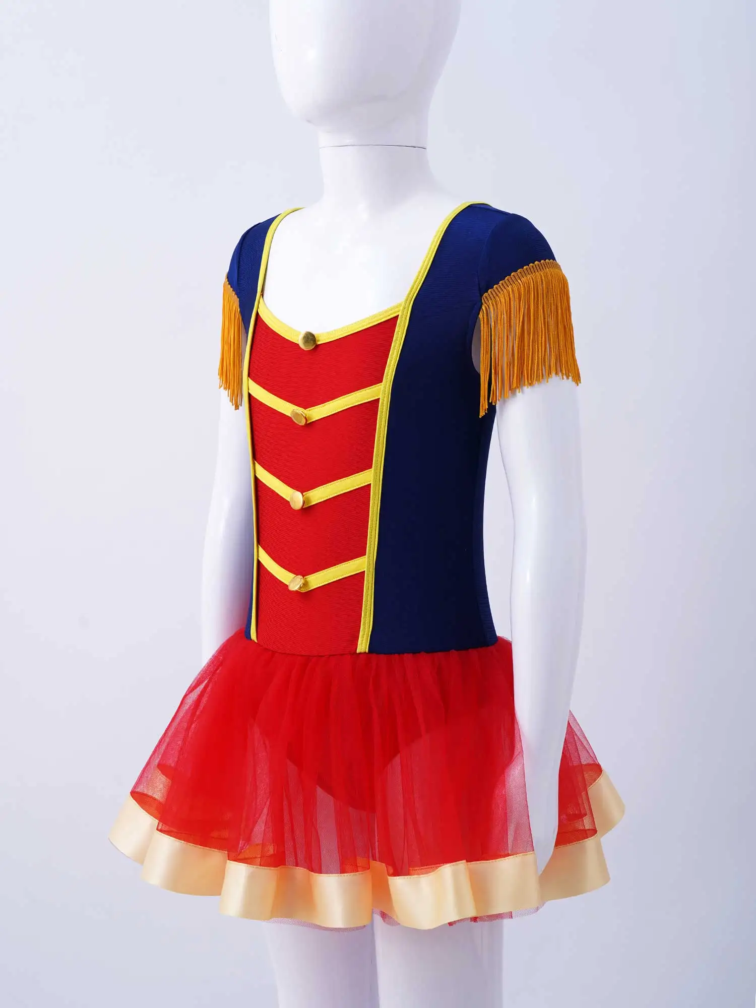 #6-14, детское фатиновое трико для выступлений для девочек, с квадратным вырезом, с кисточками, с рукавами, с золотыми пуговицами, пышное фатиновое боди для танцев, для костюмированной вечеринки