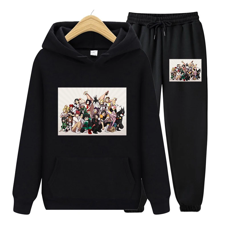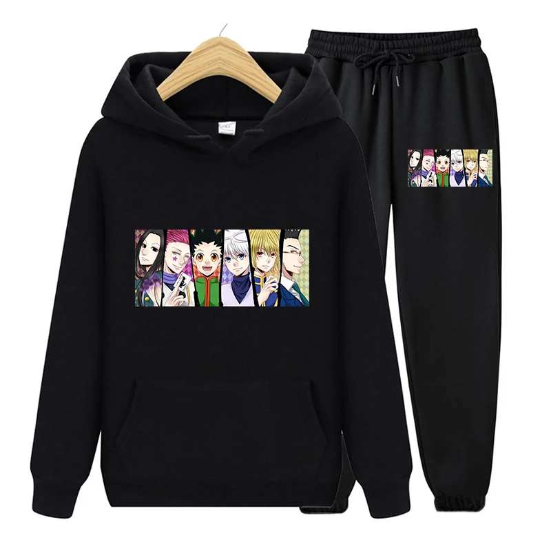 Зимние толстовки Hunter X Hunter с длинным рукавом, свободная толстовка и штаны для бега, спортивные костюмы Harajuku, повседневные женские комплекты из двух предметов